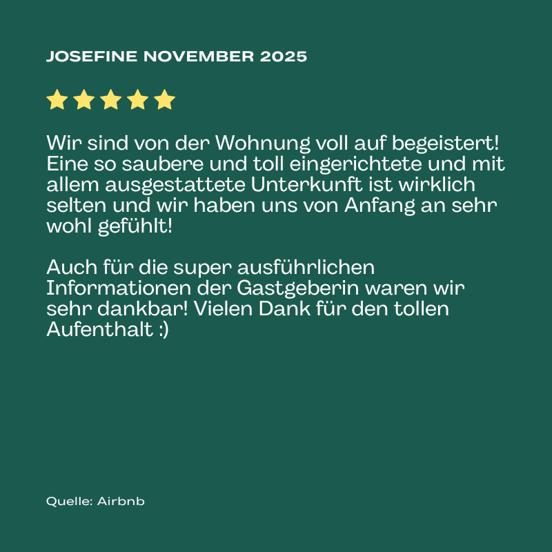 Die Ferienwohnung liegt auf Gartenebene im Untergeschoss mit direktem Zugang zur eigenen kleinen Terrasse, ganz privat und nur für dich. Hier kannst du in Ruhe frühstücken, die Sonne genießen oder einfach entspannt ins Grüne schauen.