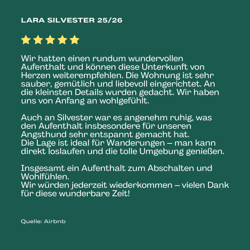 Die Wohnung liegt am ruhigen Ortsrand von Sankt Andreasberg unweit der Jordanshöhe. Hier findest du den perfekten Ausgangspunkt für einen aktiven Urlaub in der Natur. Zahlreiche Wanderwege beginnen fast unmittelbar an der Haustür und auch die Highlights Brocken, Oderteich oder Wurmberg sind schnell erreicht. Die direkte Lage am Nationalpark Harz ist auch bestens geeignet für deinen Urlaub mit Hund. Auch er ist bei uns herzlich willkommen.
