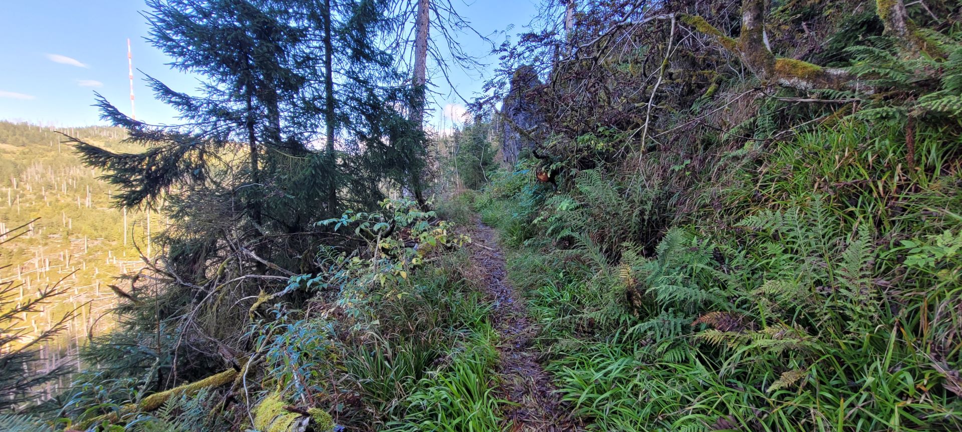 Wer noch Lust und Puste hat, biegt hier zur Wolfswarte ab: felsig, wild und mit tollen Aussichten. Über den Buttersteig kommt man anschließend wieder auf unsere Wanderung zurück.