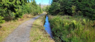 Die Steile Wand Straße muss einmal überquert werden, dann läuft man den Clausthaler Flutgrabenweg entlang. Eine angenehm entspannte Passage parallel zur Straße.